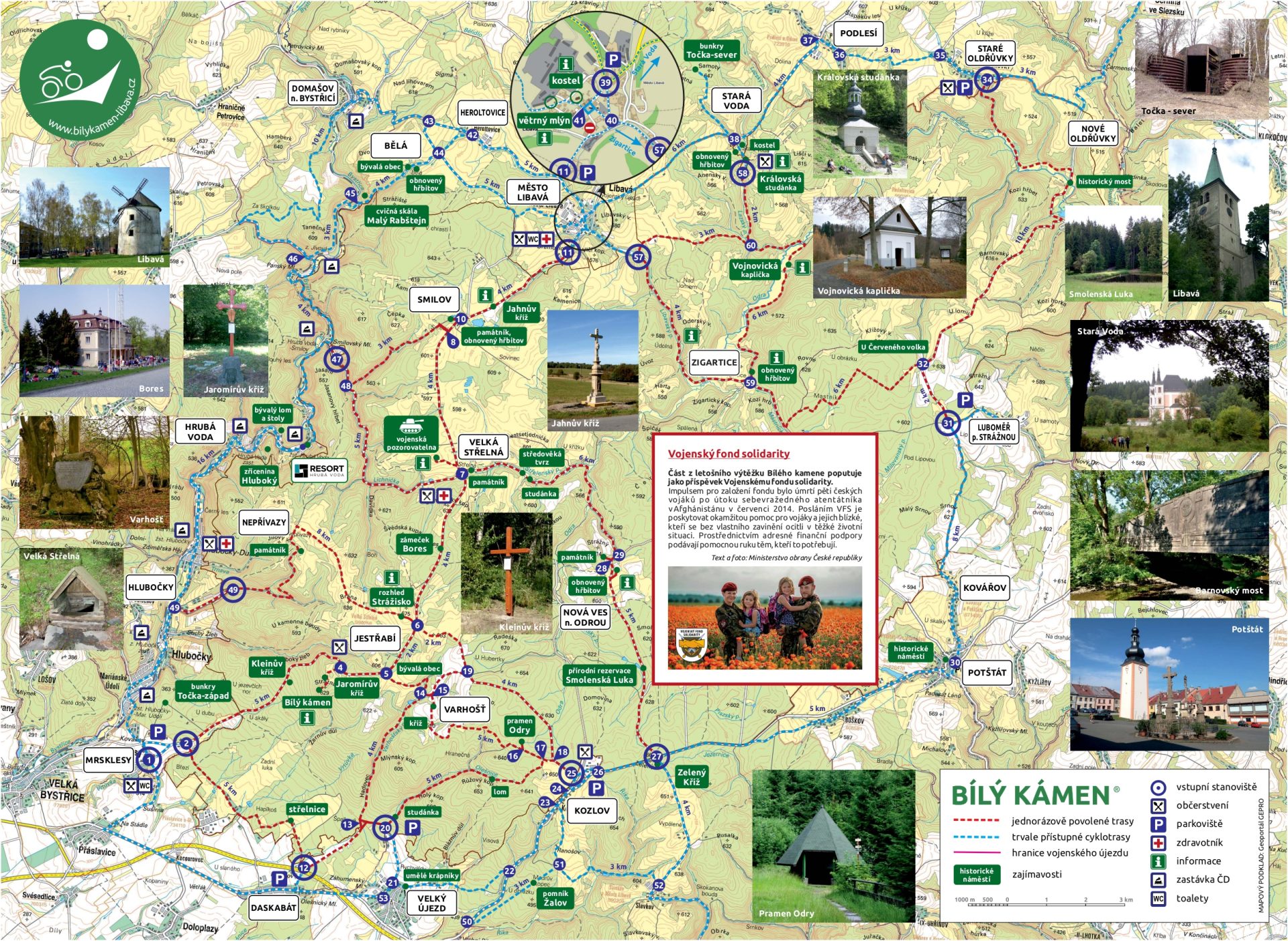 Akce Bílý kámen umožňuje cyklistům, koloběžkářům, ale i pěším turistům poznání zajímavých míst jinak celoročně uzavřeného vojenského prostoru Libavá. Hlavním pořadatelem je Haná Velká Bystřice, město Velká Bystřice a Okrašlovací spolek Lubavia, spolupracující s obecními úřady přilehlých obcí, armádními složkami Vojenského újezdu Libavá, Vojenskými lesy a statky ČR, Vojenskou policií a Policií ČR.