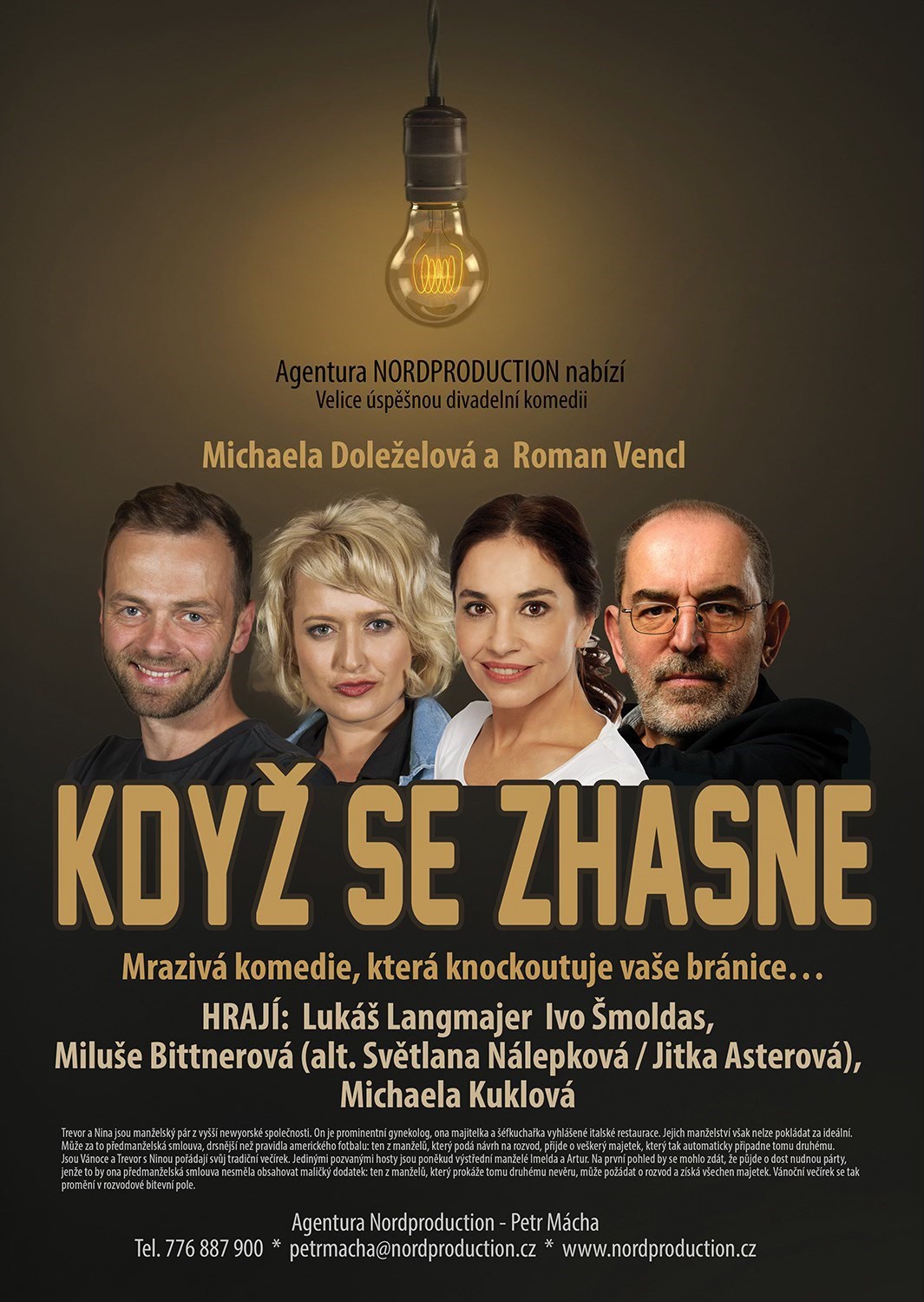 Divadelní představení Když se zhasne se uskuteční v úterý 1. prosince od 19 hodin v Divadle Stará střelnice. Vstupné je 650 Kč nebo 690 Kč, dle místa usazení v sále. Vstupenky koupíte zde.