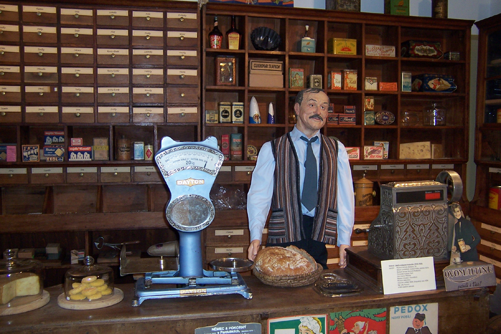 Přijďte navštívit historické obchody, jejich vybavením a zboží obchodníka Bajzy, cukráře Svobody, strýce Vařeky a řezníka Čtveráka. Kromě historických krámků vás čeká maloměstský jarmark plný zvířeny a nejrůznějšího zboží, sbírka reklamních cedulí a plakátů či historických platidel. Součástí výstavy je také hernička.
