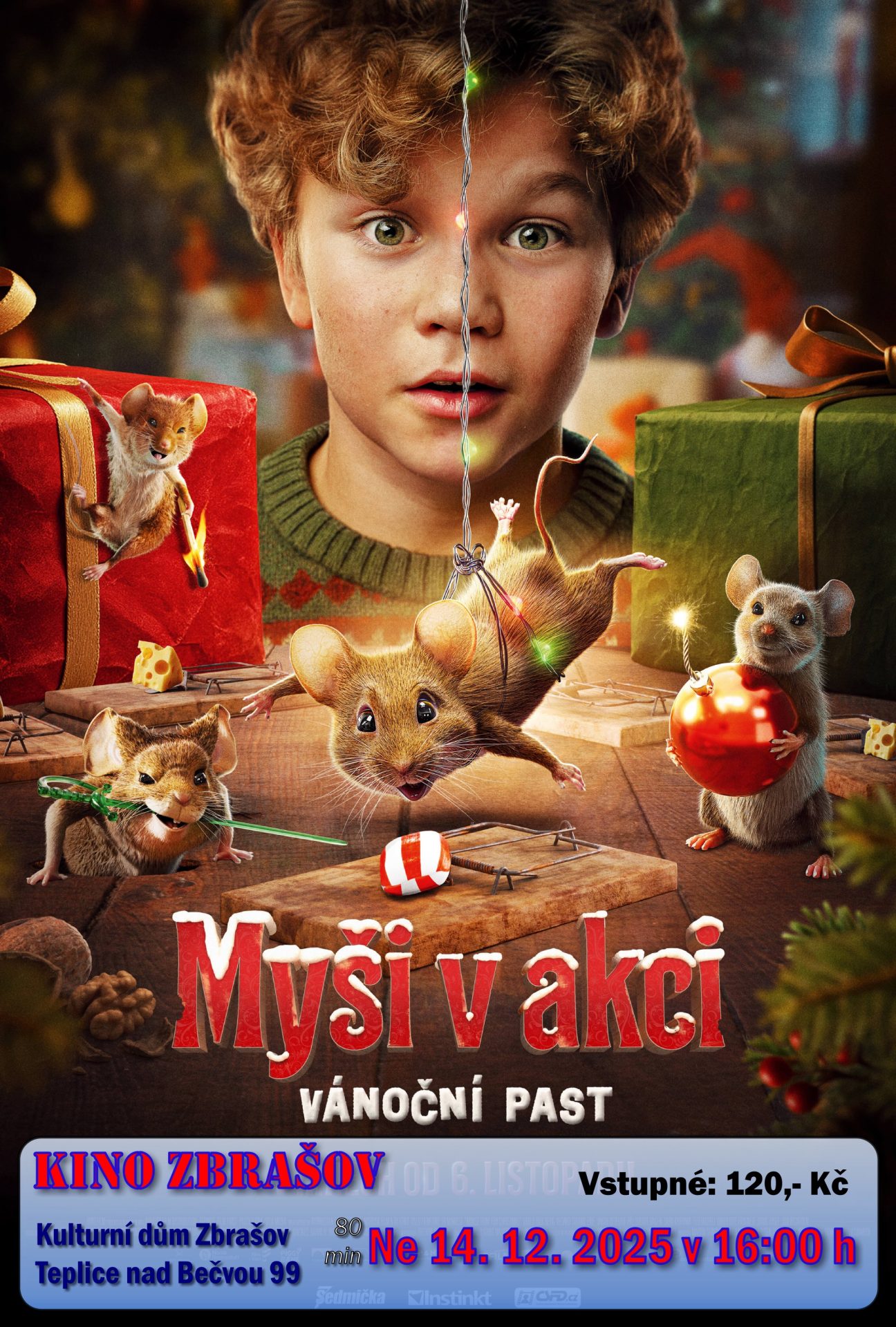 Animovaná komedie Myši v akci: Vánoční past se bude promítat v neděli 14. prosince od 16 hodin v Kině Zbrašov. Vstupné je 120 Kč.