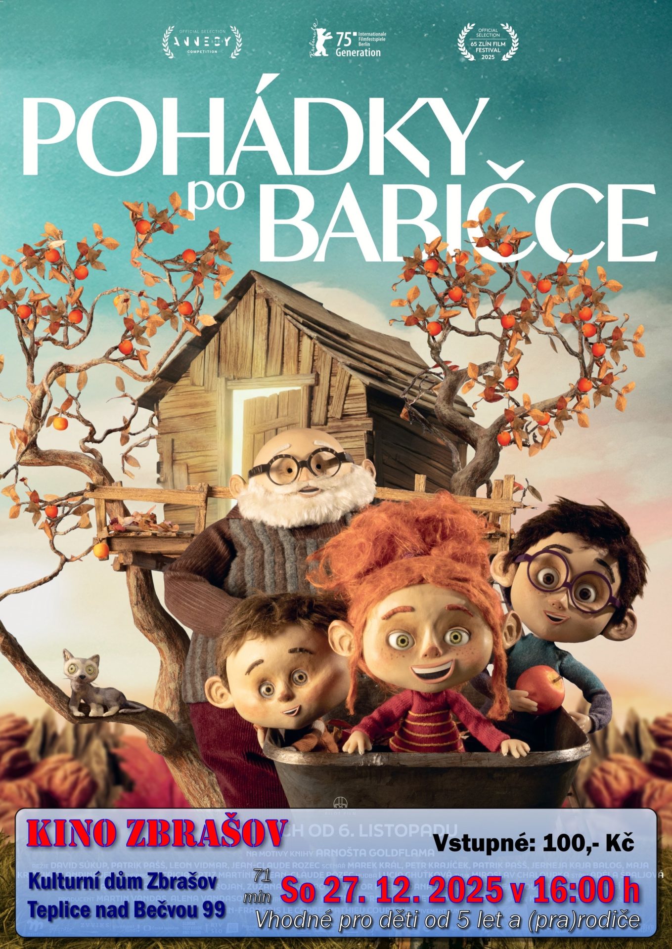 Animovaný loutkový film Pohádky po babičce se bude promítat v sobotu 27. prosince od 16 hodin v Kině Zbrašov. Vstupné je 100 Kč.